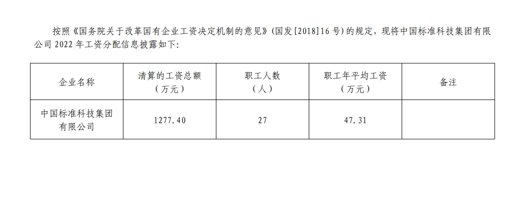 2022年中國標(biāo)準(zhǔn)科技集團(tuán)有限公司工資分配信息披露