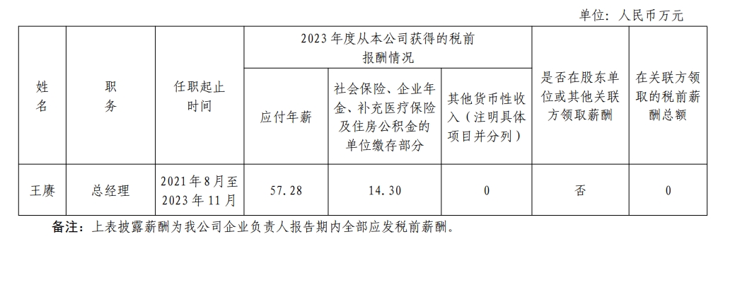 中國標準科技集團有限公司企業(yè)負責(zé)人2023年度薪酬情況
