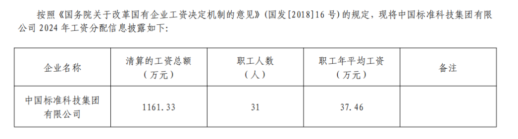 2024年中國標準科技集團有限公司工資分配信息披露