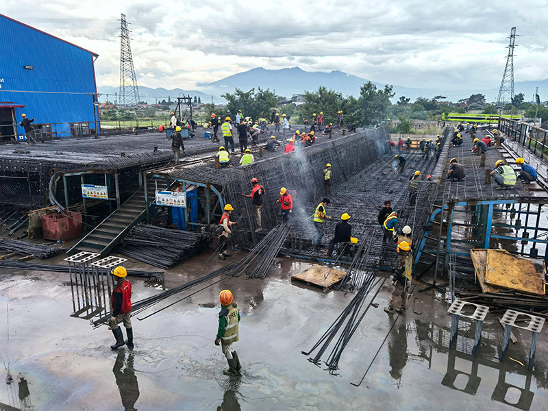 工人在印度尼西亞雅萬高鐵4號(hào)梁場(chǎng)作業(yè)(2022年5月1日攝)。新華社發(fā)(王增堃 攝)