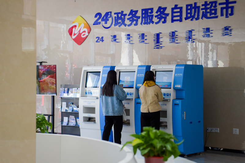 在內蒙古自治區呼和浩特市玉泉區政務服務中心的“24小時政務服務自助超市”,市民在自助辦理發票業務(2022年4月2日攝)。新華社記者 李志鵬 攝