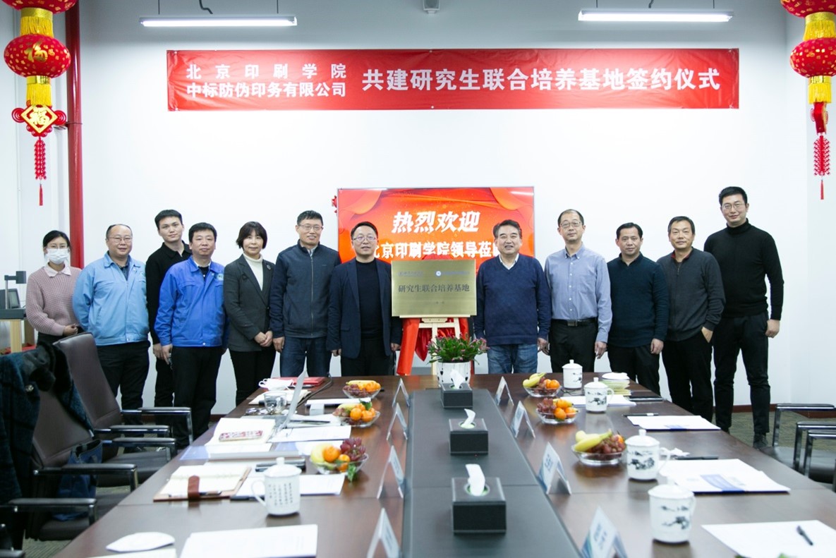 2023年1月11日,北京印刷學(xué)院王關(guān)義副校長(zhǎng)一行六人、中標(biāo)集團(tuán)總經(jīng)理王賡赴中標(biāo)防偽參加“北京印刷學(xué)院與中標(biāo)防偽共建研究生聯(lián)合培養(yǎng)基地”簽約及揭牌儀式,北京印刷學(xué)院特別聘請(qǐng)劉祥、李艷君擔(dān)任北印研究生校外導(dǎo)師。