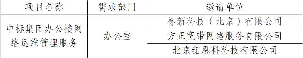 按照《中國標準科技集團有限公司采購工作管理辦法(試行)》要求,現(xiàn)對中標集團辦公樓網(wǎng)絡(luò)運維管理服務(wù)項目競爭性談判邀請單位公示。