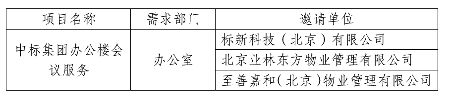 按照《中國標(biāo)準(zhǔn)科技集團有限公司采購工作管理辦法(試行)》要求,現(xiàn)對中標(biāo)集團辦公樓會議服務(wù)項目競爭性談判邀請單位公示。