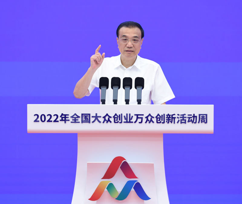 9月15日,中共中央政治局常委、國務院總理李克強在北京人民大會堂出席2022年全國大眾創(chuàng)業(yè)萬眾創(chuàng)新活動周,發(fā)表重要講話,宣布活動周啟動。新華社記者 王曄 攝